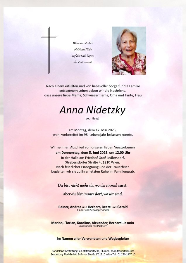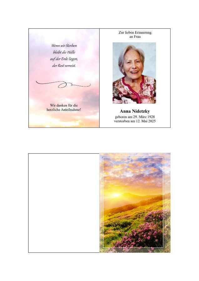 wir wünschen Ihnen von Herzen viel Kraft, dass Sie Menschen um sich haben, die Ihnen in dieser schweren Zeit beistehen und Halt geben. Zusätzlich können Sie auf dieser Gedenkseite Erinnerungen teilen und so das Andenken gemeinsam wachhalten.