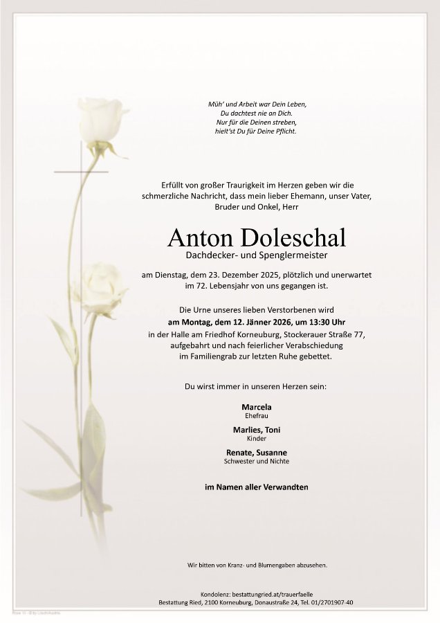 Ich hatte immer sehr nette Begegnungen & Gespräche mit Herrn Anton Doleschal.