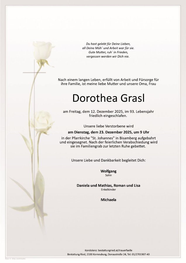 Dorothea Graslgestorben am 12. Dezember 2025