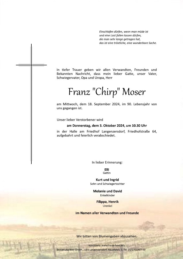 Franz Mosergestorben am 18. September 2024