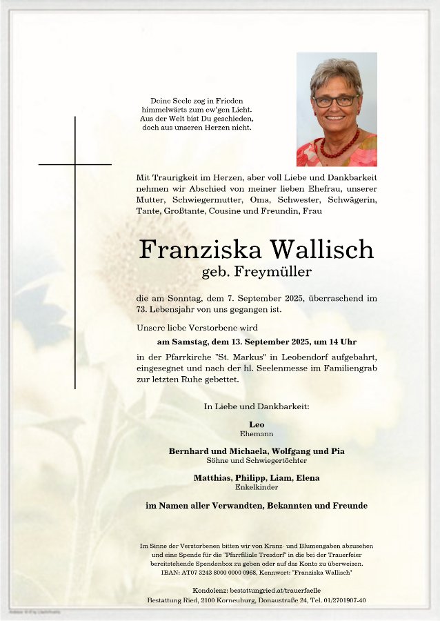 Mein aufrichtiges Beileid. In Gedanken und Gebeten bin ich bei dir, lieber Leo. Franziska ist überraschend gegangen, aber in seine Hände gefallen. Wir werden uns alle wiedersehen.