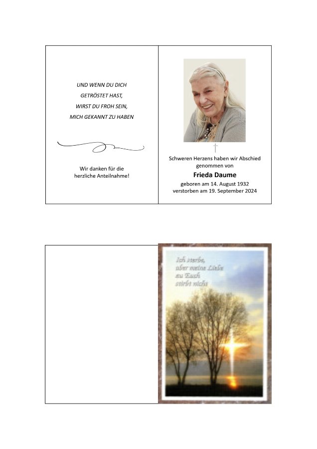 wir wünschen Ihnen von Herzen viel Kraft, dass Sie Menschen um sich haben, die Ihnen in dieser schweren Zeit beistehen und Halt geben. Zusätzlich können Sie auf dieser Gedenkseite Erinnerungen teilen und so das Andenken gemeinsam wachhalten.