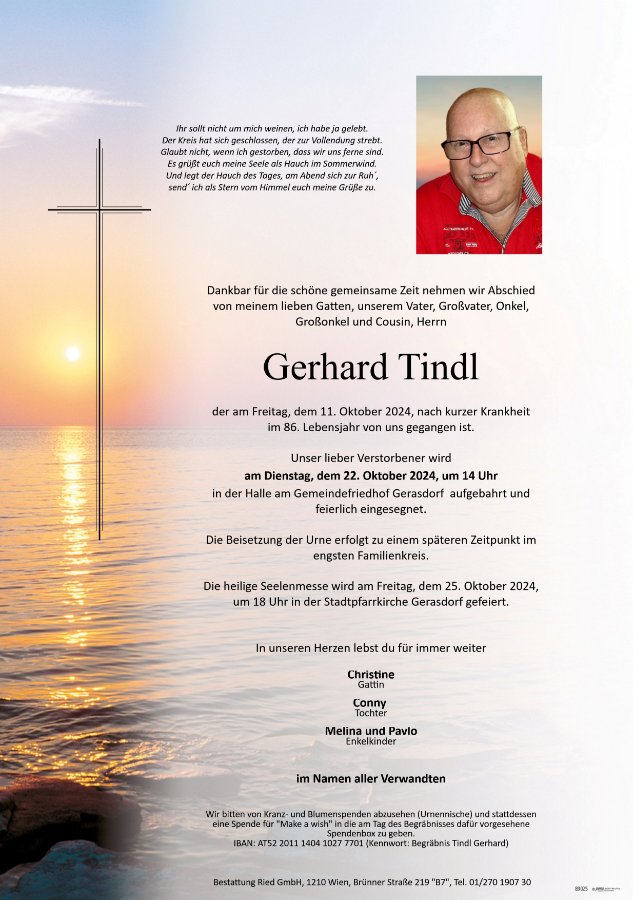 Gerhard Tindlgestorben am 11. Oktober 2024
