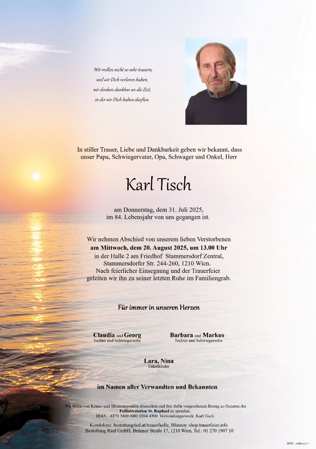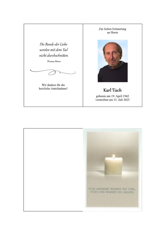 wir wünschen Ihnen von Herzen viel Kraft, dass Sie Menschen um sich haben, die Ihnen in dieser schweren Zeit beistehen und Halt geben. Zusätzlich können Sie auf dieser Gedenkseite Erinnerungen teilen und so das Andenken gemeinsam wachhalten.