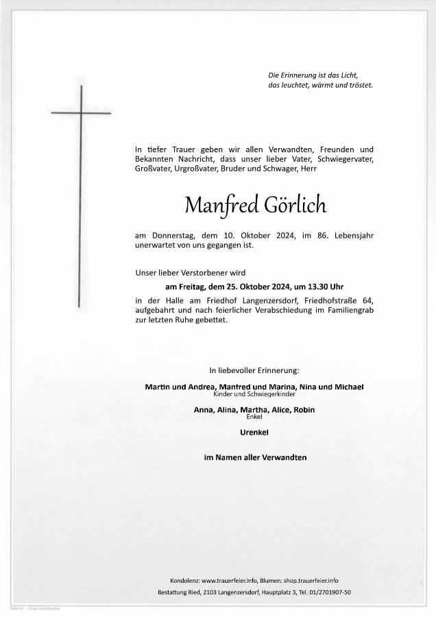 wir wünschen Ihnen von Herzen viel Kraft, dass Sie Menschen um sich haben, die Ihnen in dieser schweren Zeit beistehen und Halt geben. Zusätzlich können Sie auf dieser Gedenkseite Erinnerungen teilen und so das Andenken gemeinsam wachhalten.