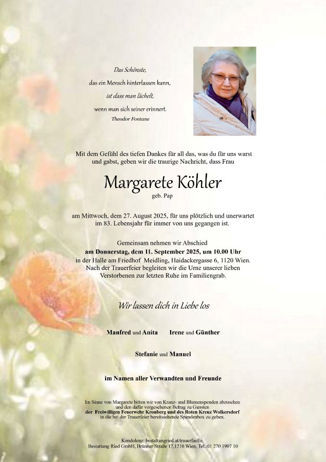 wir wünschen Ihnen von Herzen viel Kraft, dass Sie Menschen um sich haben, die Ihnen in dieser schweren Zeit beistehen und Halt geben. Zusätzlich können Sie auf dieser Gedenkseite Erinnerungen teilen und so das Andenken gemeinsam wachhalten.