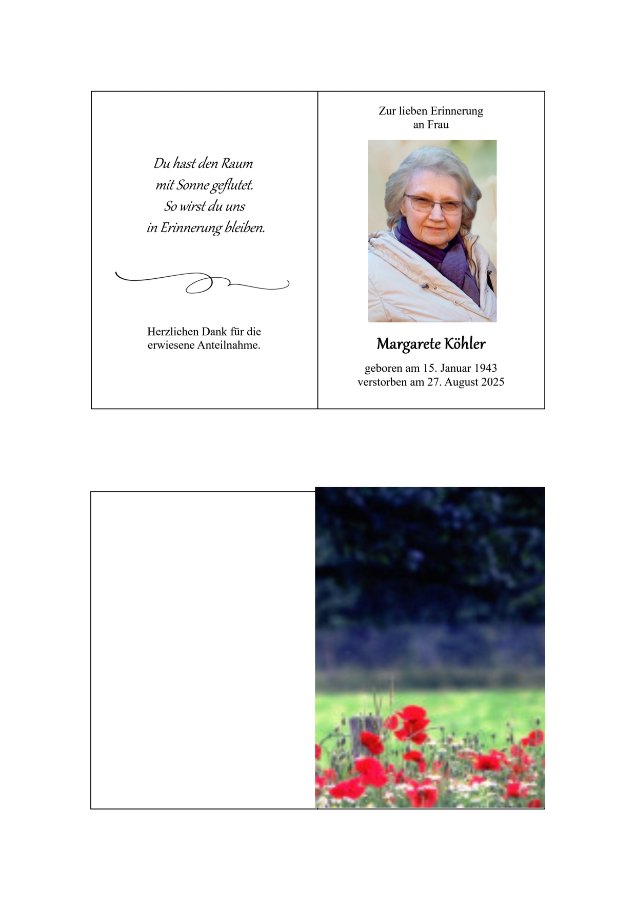 Gestalten Sie mit öffentlichen Inhalten der Gedenkseite und eigenen Fotos ein Erinnerungsbuch und bestellen Sie es direkt nach Hause.