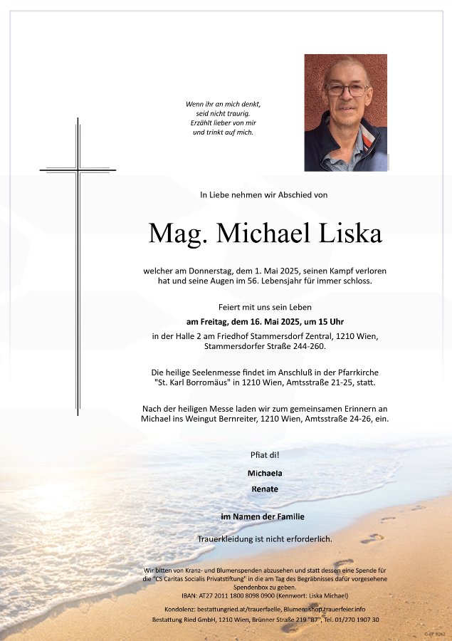 Leider ist es mir nicht möglich heute am Abschied von Michael teilzunehmen. Daher möchte ich hier mein Beileid aussprechen. Bewundernswert wie er gekämpft hat, schön, wie offen er erzählt hat. Wir werden ihn nie vergessen.