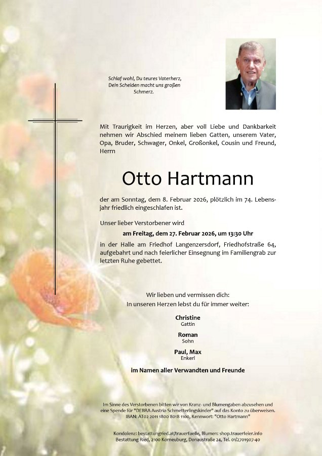 Otto, Du warst ein guter und aufrichtiger Mensch mit sehr viel Wertschätzung für Deine Mitmenschen und Du konntest, mit Recht und vollem Verständnis, nicht damit umgehen dass manche Mitmenschen sich Dir und Christine gegenüber nicht so verhalten haben.