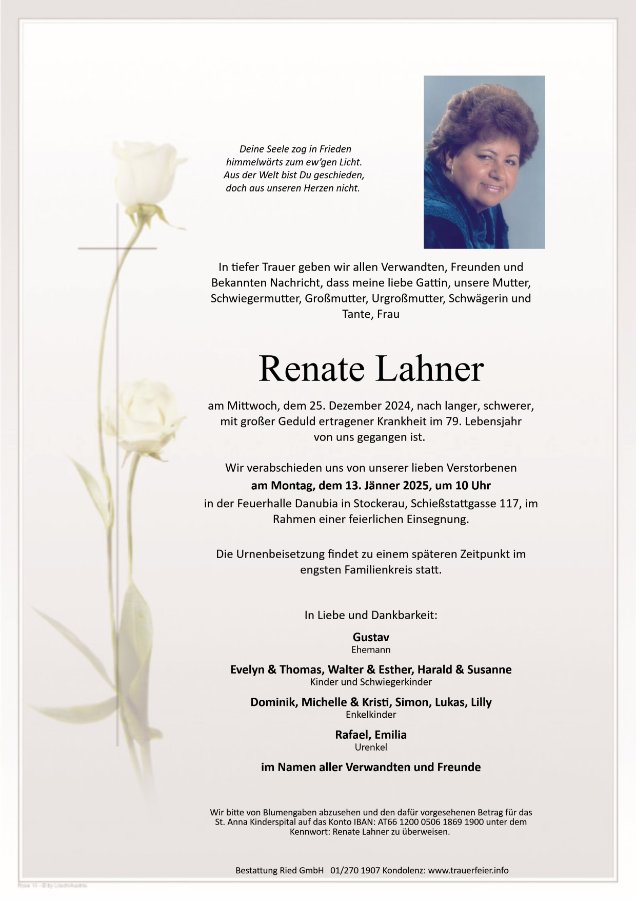 wir wünschen Ihnen von Herzen viel Kraft, dass Sie Menschen um sich haben, die Ihnen in dieser schweren Zeit beistehen und Halt geben. Zusätzlich können Sie auf dieser Gedenkseite Erinnerungen teilen und so das Andenken gemeinsam wachhalten.