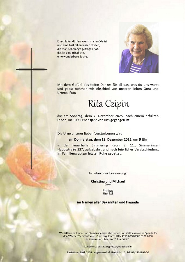 Liebe Rita, mein Licht soll dich auf deiner letzten Reise begleiten.