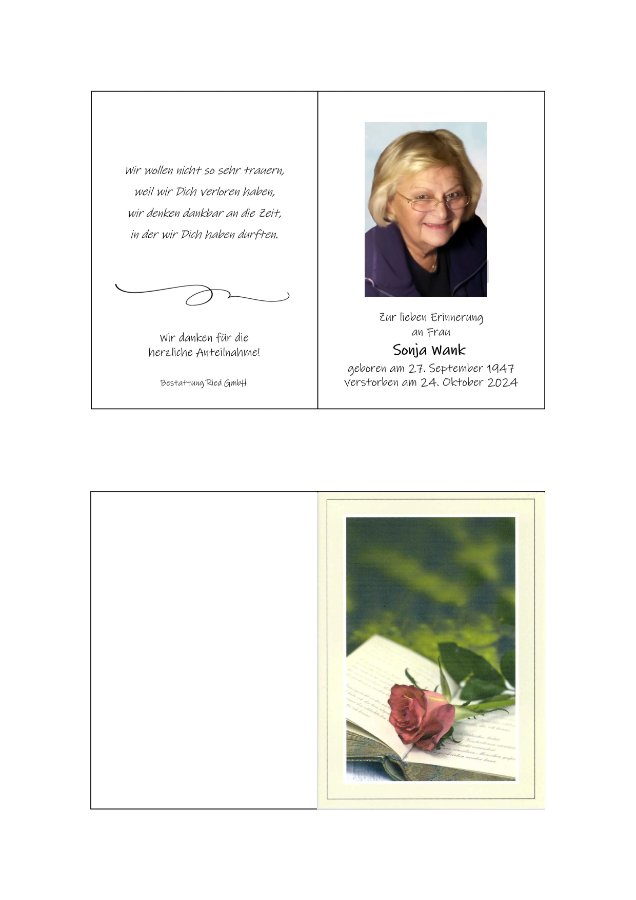 Gestalten Sie mit öffentlichen Inhalten der Gedenkseite und eigenen Fotos ein Erinnerungsbuch und bestellen Sie es direkt nach Hause.