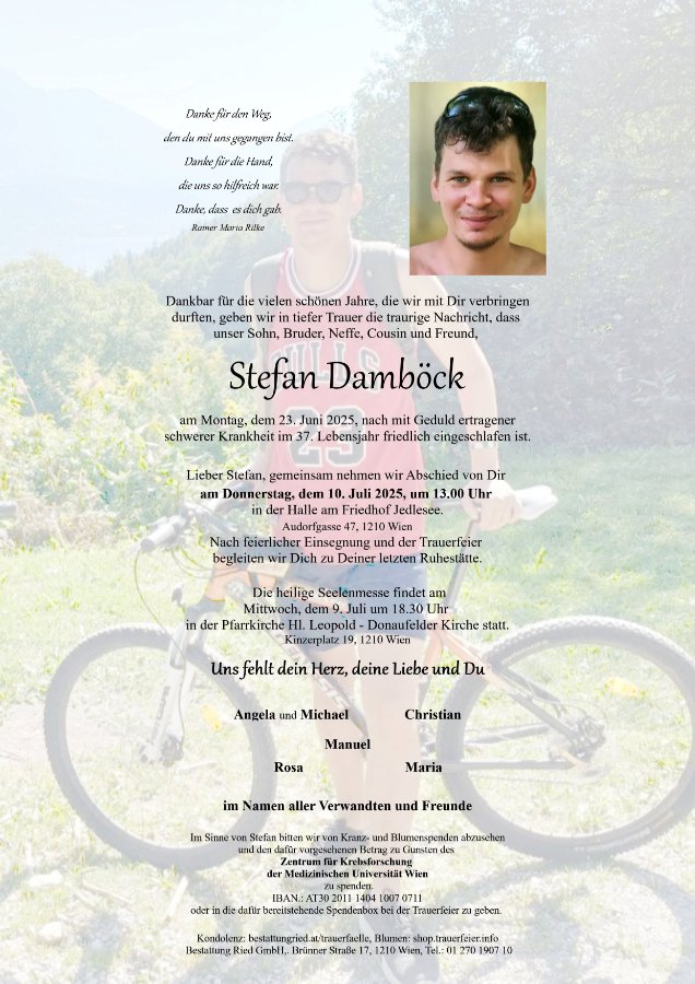 Viel Kraft auf dem letzten Weg, Hanni und Rudi Platz & Jonathan, Rosalin, Hannah, Hannes & Eva-Maria Kalsner