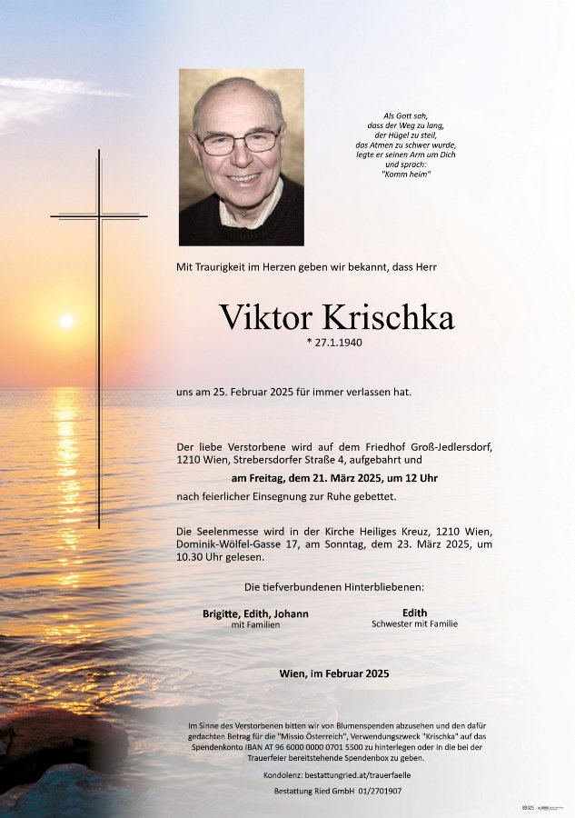 Du warst mein Volksschullehrer und wir hatten später auch noch immer wieder in Kontakt. Danke was du mir als einfühlsamer und guter Lehrer gelehrt und gelernt hast. Du hast mir damit auch eine gute Lebensbasis gegeben. Wir werden uns wiedersehen, in einem anderen ewigen Leben!