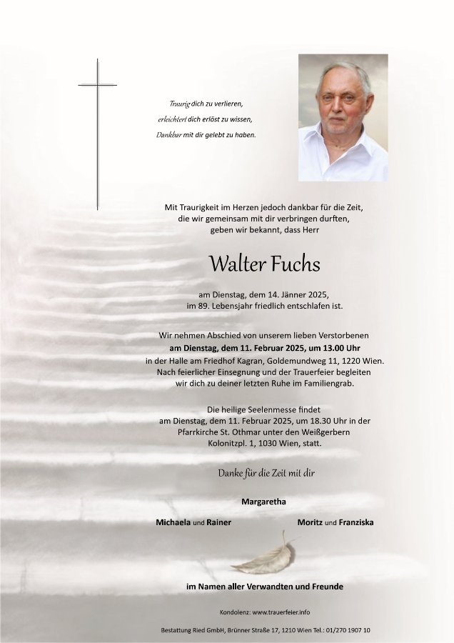 Mit Walter haben wir nun einen Nachbarn verloren, dessen Freundlichkeit und Hilfsbereitschaft wir besonders schätzten. Er wird fehlen und immer in Erinnerung bleiben.
